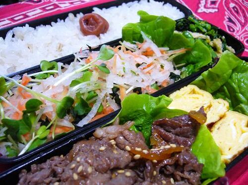 ★ゆず焼き肉弁当★ ◆ごはん(梅干) ◆菜の花と油揚げのからし醤油和え ◆大根と人参とかいわれのサラダ ◆さつまいものミルク煮 ◆ねぎ入り玉子焼き ◆ゆず焼き肉 にんにく醤油にゆず茶をいれて、甘辛く味つけした焼き肉です。 牛特有のくさみがなくなって、すご…