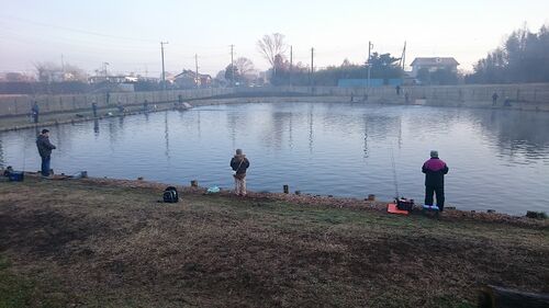 ウォルトンガーデンという成田にある管理釣り場です。 寒いのもあるけど、腕の差でひでちゃんのほうが釣れます。 私はあんまりいや、けっこう釣れないけど、管釣り好きなんです。 私が釣ったのは一番上と、下のちっこいのの、どっちか、2匹です。 ひでちゃん…
